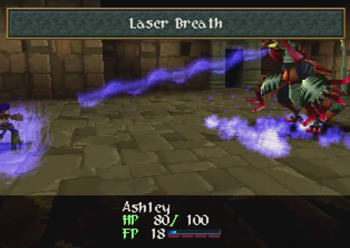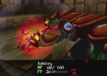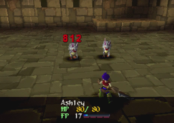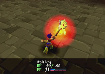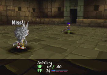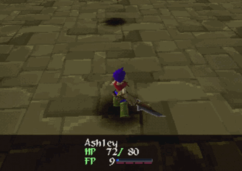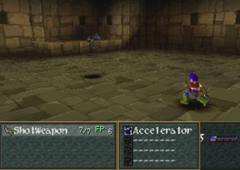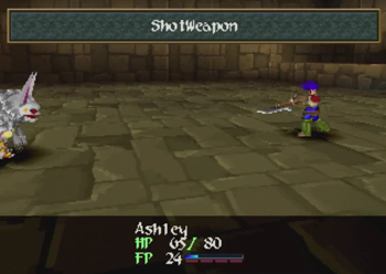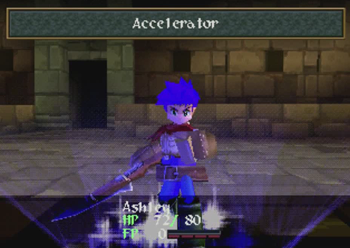 Ashley also has the Level 1 FP ability Accelerator. This is a Wild Arms staple that allows the user to move first during one turn, regardless of the speed of everyone else on the field. This is amazing, and allows for some ridiculous exploitation. For right now, just consider that Ashley can always use a healing item first thing in a round, assuming he’s got a piddling 25 FP.