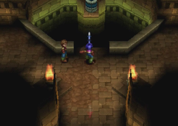 Ah, here’s where we get to show off the specialty of the Hurl Knife. See, we’re on a different plane here, so any attempts to hit the switch with the knife (or Lilka’s fire, were that available here) go sailing overswitch.
