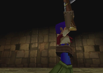 Falling allows Ashley to access that dork that fell down here in the first place. Luckily, Ashley does not land directly atop the hapless nerd.