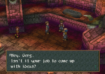 The kid is named Tony. According to the Wild Arms Wiki, his full name is Tony Stark. Wait… what? Seriously? Let me just corroborate…. Yes, apparently the kid in red and yellow is named Tony Stark. I… I’m frozen with the sheer number of ways I can utilize this knowledge. I think I have to lie down…