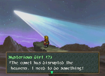 A girl (?) is concerned about lights and comets and whatever. Also, she has a neat hat. Moving on!