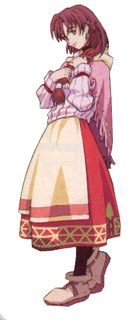 Incidentally, she’s identified as the “innkeeper’s daughter”, but this is a bakery, and according to auxiliary materials, she’s actually the niece of the wife of the baker, and… Oh never mind.