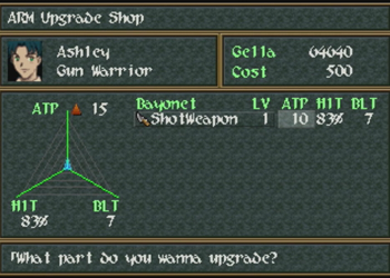Each ARM can be upgraded in three different parameters: Attack, Hit Percentage, and Bullet Load. You really can’t go wrong with upgrading any particular way, though you may recall that Brad has a 100% hit percentage skill, so that might be less of a priority for him. Attack power is obvious, though bullet load can be really useful in a few key situations. Also note that you are limited to a set number of upgrades per ARM, so don’t think you can grind for infinite money and upgrade to ridiculous parameters.