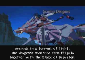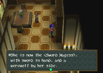 But giant wolves have a way of sneaking in, even if the script doesn’t give ‘em a mention. Incidentally, it’s just a trick of the “lighting”, but this shot of Sword Magess really reminds me of Virginia Maxwell of Wild Arms 3.
