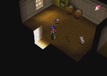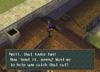 Okay, so we’ve got the cat-chasing task ahead of us, but we’re also free to explore the town at will. Let’s do that. Kitten is probably asleep on her pile of pilfered treasure, anyway.