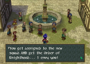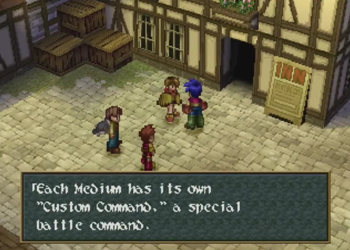 Mediums are equipped like weapons and armor, and each one offers some minor stat boosts. They also grant the equipper one new command of dubious usefulness. In this case, Grudiev grants the Defencer command, which is basically the Final Fantasy skill Cover. Take a hit for your buddies, if you feel like it. Note: Ashley currently has no buddies.
