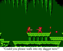 Foxy: “Fox’s” Peter Pan and the Pirates was a Saturday morning television show on Fox. Okay, you probably guessed that. Fox managed to outbid Disney for the license just this once, and made a surprisingly trippy cartoon series out of the whole deal. The Peter Pan nonsense was pretty tiresome, but there was a surprising amount of attention paid to (actually competent) Captain Hook and his pirate crew. Oh, and one time Wendy’s daughter from the future showed up, and Sailor Moon has taught me that that trope is always cool.- Say something nice: Unusual for a platformer, your health is a number in this adventure. And even more unusual, your health doesn’t seem to have an upper limit. So, assuming you stay out of the jaws of a crocodile, you should have practically unlimited health by the final boss. Or you’ll have practically nothing because of a random instant death trap. One or the other.