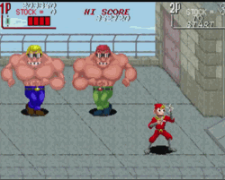By 1990, you couldn’t cut it with bubble-based dinosaurs anymore, so it was time to give in to the times and release a beat ‘em up. Except… nobody at Taito had any idea how to make a beat ‘em up, so they made something that’s a little more Mega Man than Streets of Rage. You take damage for simply touching an opponent, ranged attacks are king, and most enemies go down in one or two hits. Despite the fact that the beat ‘em up genre was well established at this point, it almost feels like the long lost missing link between 2-D action games and Mike Haggar’s Big Day. It’s an amusing proto-beat ‘em up from way back when! Nothing weird about that!