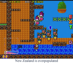While this might all sound like basement level insanity (this isn’t even the only old school game to be based entirely on the deliciousness of kiwi birds), what really pushes this one over the top is the “New Zealand Story” angle. Yes, kiwis are indigenous to New Zealand. And, yes, after every stage, you get a real life map of New Zealand. And, as you progress, you will learn the geography of New Zealand, and which areas potentially include enormous, kiwi-eating whale bosses. Was this title made with a grant by the New Zealand tourism board? Or, more likely, did some random dudes in Japan just spin a globe, point randomly at the Pacific Ocean, and base a game on the first country that happened to appear? Which option is more sane?