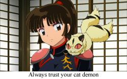 - Kagome and Inuyasha gain three allies: Sango the demon huntress, Miroku the lecherous monk, and Shippō the walking stuffed animal. They are additionally joined by an unevolved litten, and the occasional fleaman.