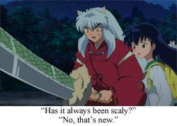 - Inuyasha’s sword turns into a dragon (?) that can puke Hell (?).