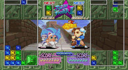 Also speaking of Puzzle Fighter, there was a Game Boy Advance port. It’s scaled down, and the color palettes of the fighters take a hit (most noticeable in ensemble characters like Donovan and Devilotte), but otherwise it’s a pretty faithful port.