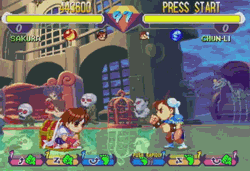 - What’s in a name: Wikipedia claims this game is known as Super Gem Fighter Mini Mix in North America, and is Pocket Fighter only in Japan. However, scroll up, see that American title screen, and tell me it says all that gem nonsense. I can still hear the silly “Pocket Fighter!” title announcement echoing in my head.