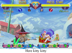 Tessa snuck into Pocket Fighter likely for the same reason as Ibuki (let’s promote some new games!), but, unlike her Street Fighter buddy, no one recognized her from her origin game. No one. The audience of 1998 was mostly convinced she was an original character made just for this title. And that’s fine! She just kind of fails as a promotion for Red Earth when no one has a damn clue that game even exists. So… good hustle, Tessa?