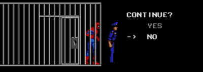 - Continue? The plot dictates that any time Spider-Man gets a game over, he is captured by the local constabulary.