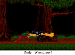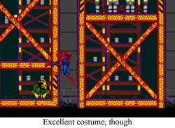 Real Continuity: It’s hard to sneak nuance into a Genesis game, but would it have killed anybody to have Dr. Curt Connors revert back to human form and apologize? The Lizard is yet another Jekyll/Hyde character for the Marvel pantheon (see also: Hulk, The), and his greatest tales always revolve around a man trying to make himself whole again (and then accidentally turning into a lizard). Granted, this does make Connors the dumbest scientist in the Marvel universe (“Maybe this time I won’t turn into… Nope, looks like I’m eating rats again.”), but his heart is in the right place. He might just be a stooge in this game, but The Lizard is worth one or two good stories in the real continuity.