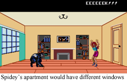 Real Continuity: Venom has become one of Spider-Man’s most aggressive and iconic foes, but he had only been around comics for a solid two years before his Master System debut. It’s no wonder no one really had any idea where he would “officially” fit into the Spider-Mythos at that point. He doesn’t even showcase his super rad tongue! But that tongue has been featured ad nauseam in the intervening thirty years, and now Venom has been everything from an intergalactic military vet to a tyrannosaurus. There was even a recent special wherein Venoms from different universes all banded together to fight Kinda-Venoms from other, more different universes. That’s right! Venom rips off everything about Spider-Man, all the time. But back in 1990, he barely even got web shooters.