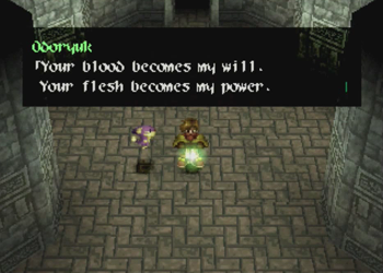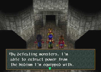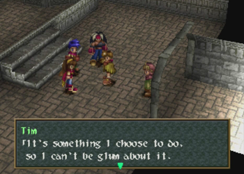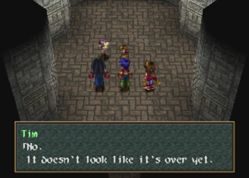 Okay, Wild Arms 2 animators? Could you have moved Tim’s “glowing medium” a little higher up on the sprite to make this metaphor a little less overt?