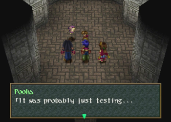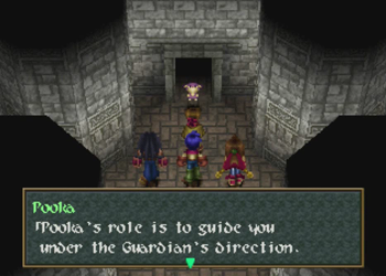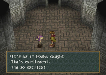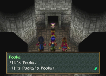 And we’re dealing with… Pooka. Oh…kay? Pooka is clearly meant to be an echo of Wild Arms’ mascot, Hanpan the wind mouse, but his role/species is very different in this adventure.