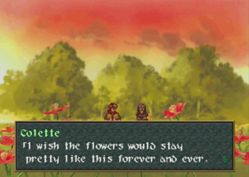 Also, while we’re still talking about Wild Arms references, Colette appears to be deliberately visually evocative of Mariel, a flower loving recurring Wild Arms character.