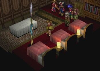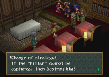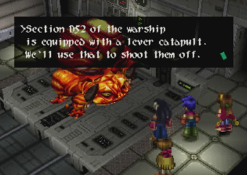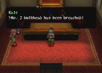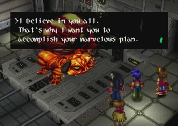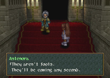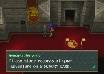 This save point is tempting, but also a trick. There are no random monsters in this area, so if you need to level up or something, you’re kind of trapped. But there are also good odds you could fail this mission, so hopefully you have an extra slot on that official Playstation memory card.