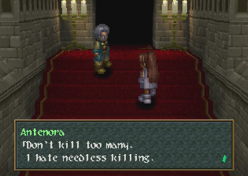 She’s been around for a while now, but let’s formally introduce Antenora Victoria. Antenora is… problematic. Her true motivations will be revealed about two minutes before her death, but, to provide a quick preview, her entire existence is, one way or another, reliant on her man, Vinsfield. This is a shame, because there’s a nugget of a good character here, as she’s the clear second in command in an organization of mostly overly macho men, and her general adherence to not being violent and sadistic stands in stark contrast to her contemporaries. In other words, she’s the rare “strong female character” that is kind of incidentally strong, and not stomping around claiming to be the biggest bitch on the block like that somehow makes her more relatable. She leads, she does it well, and it’s kind of a shame it’s all in service of one of the most tragic (on multiple levels) revenge plots you’ll find in the series.