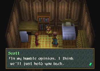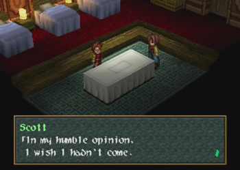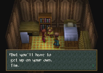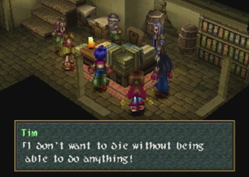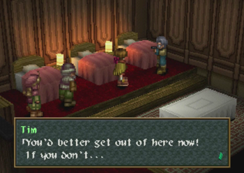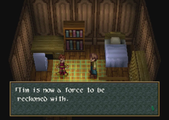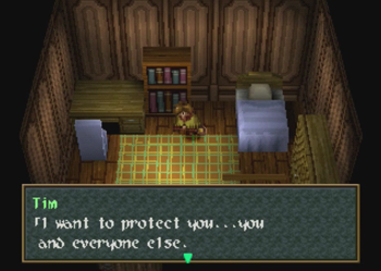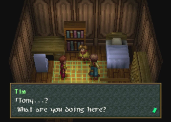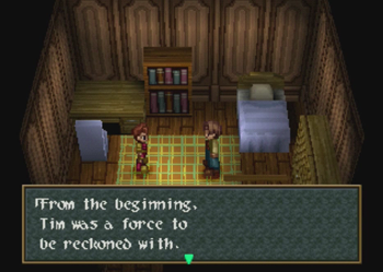 I really do enjoy how… claustrophobic this scene appears with very minimal sprite work. I joke, but you do get the impression that Tim is in a tweeeeak over his head.