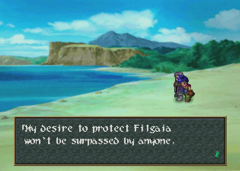 “I want to fight with you despite my body in this shape. My desire to protect Filgaia won’t be surpassed by anyone.”
