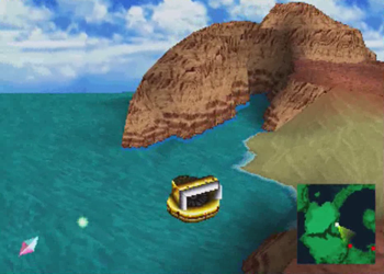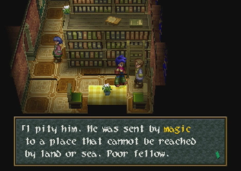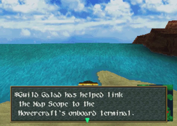 While we’ve got the map up, note that the hovercraft only covers the “Inland Sea”, which means we’re stuck in that crescent shaped area in the middle. Like many “early” ships in JRPGs, we’re pretty limited with our means of conveyance. Come to think of it, this is the exact same trick as Final Fantasy 1.