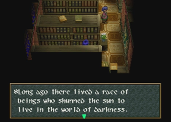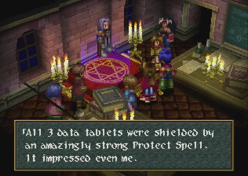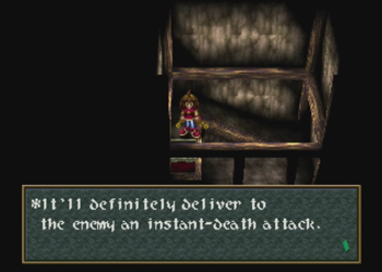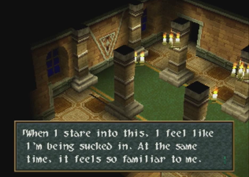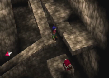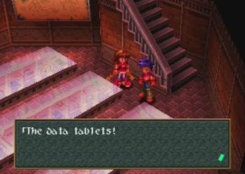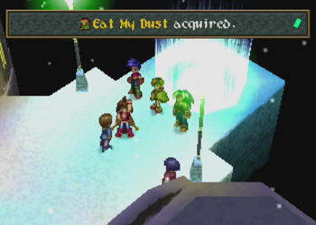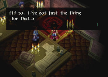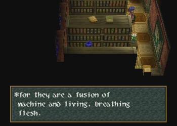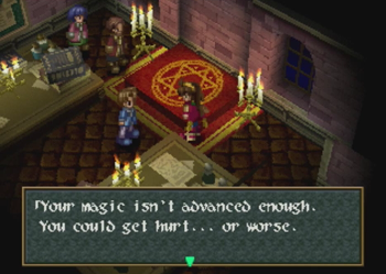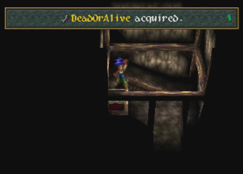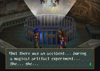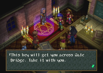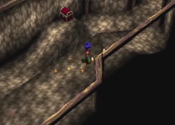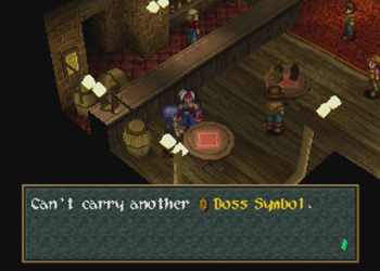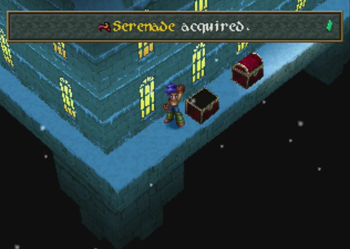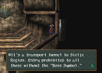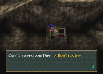 Oh, this appears to be the first duplicator in Wild Arms 2. Duplicators are an improperly named Wild Arms tradition. They’re effectively magic keys, and they open magically sealed treasure chests and doors. In general, you will have a limited number of duplicators at any given moment, and a lot of later areas have multiple duplicator-sealed treasure areas. In other words, use your duplicators wisely, and you can score some good gear.