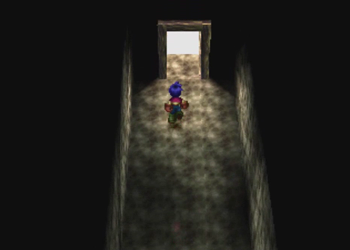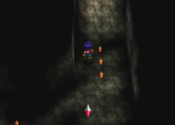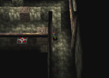 You must depress one switch, steal a block, use that block on the other switch, and use the first block to help make a bridge across the area. It’s not a very complicated puzzle, and is just about right for a throwaway dungeon like this one. Good job, random block puzzle designer!