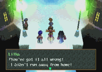 I don’t know how I feel about this “revelation”. On one hand, Lilka is the most optimistic member of the party, and revealing that she has serious abandonment issues seems really tacked on now (after she’s been all waves and smiles for the entire game) and later (she will go back to that immediately after this area). On the other hand, it’s entirely possible that Lilka’s complete personality is some kind of overcompensating so people won’t leave her, and she’s the life of the party precisely because she is so secretly lonely. One way or another, it feels like the translation again dropped the ball on Lilka, and any sort of subtlety in her characterization was lost along the way.