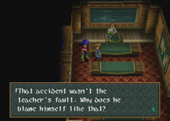 Okay, last chance to check out the rest of Sielje before we hit the road. Apparently this teacher blames himself for the death of Lilka’s unnamed sister, but he doesn’t recognize Lilka or something, so we don’t get any unique weeping dialogue.