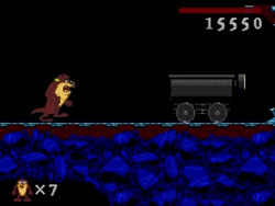 Fun fact: weed killer is not a balanced part of a tazmanian devil’s diet. Beyond that, this was a gorgeous, fairly basic 2-D platformer, and the goal was to jump on everything from here to the end of the stage. You could even use Taz’s whirly attack every once in a while… but it’s generally not recommended, as it will absolutely get you killed.