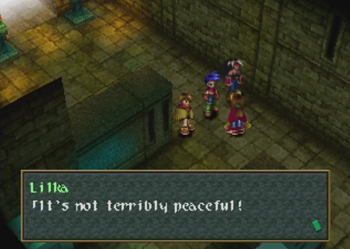 This would have been a fine excuse to show how things are different five years after a civil war (or whatever), or how releasing the hounds to catch Brad screwed up the local eco system, or something to make this area distinct. But, nope, it’s just the same mandatory dungeon that you already completed. Nothing is different, and even some of the stuff that only made sense because you were a party of one has not been changed to match the presence of a full ARMS. There isn’t even some dude in a shed complaining that someone stole his kick boots five years ago!