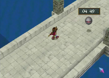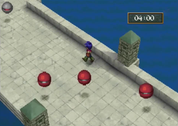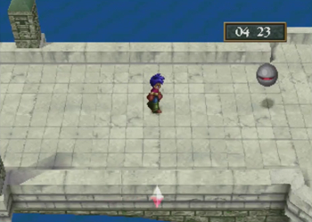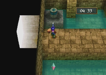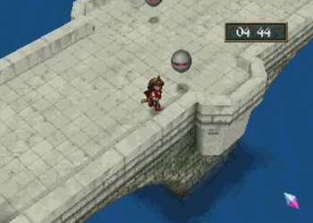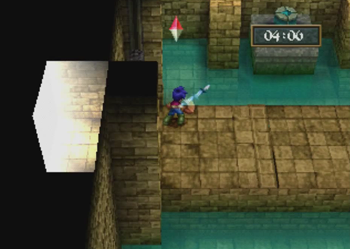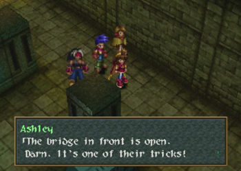 So timed dungeon! We’ve got five minutes until Liz lifts the bridge again and generally inconveniences everybody. I don’t know if letting the clock run out leads to a game over or simply having to restart this area (as we can just press that “close” button again, presumably), because it is nearly impossible to run out of time for reasons that will become obvious shortly.