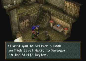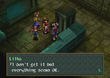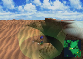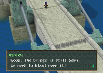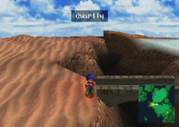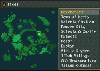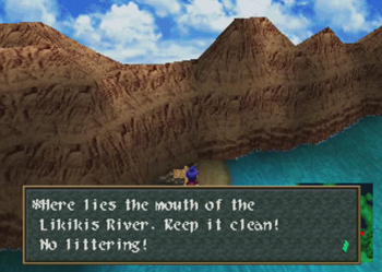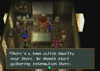 “We do have some information about Quartly here. To reach Quartly, go up the Lilikis River, which flows into the southwest part of the Inland Sea. You should be able to reach the desert from the coast. Quartly is a town on a bridge spanning a huge rift valley known as Big Valley. That’s all the information I have. Over and out.”