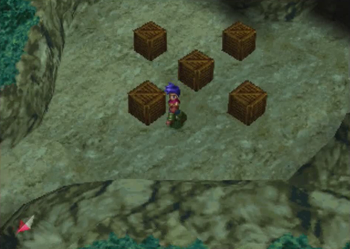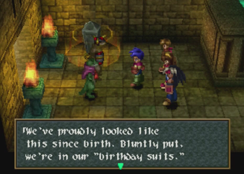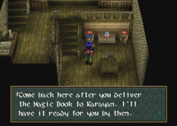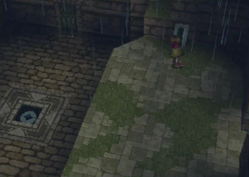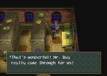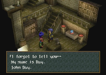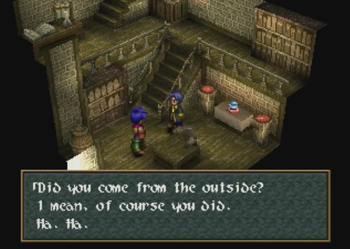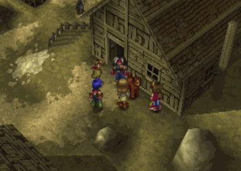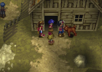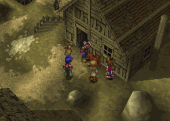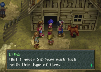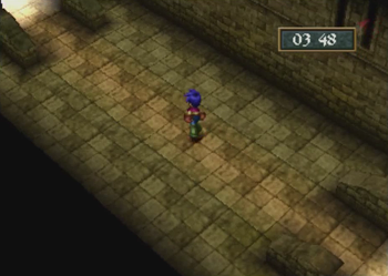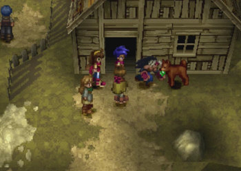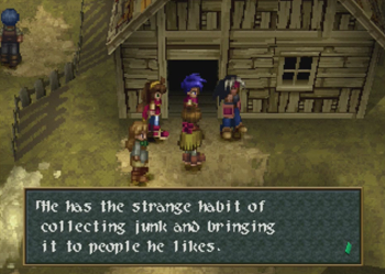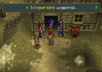 Also, behind John’s house is a treasure chest containing a Weather Vane. This item prevents monster surprise attacks, and should be equipped on Tim immediately. I hate those ambushed, one person battles.