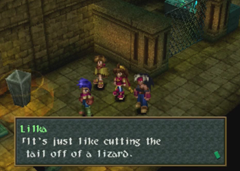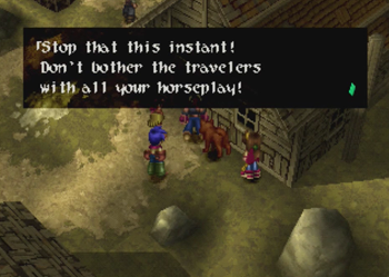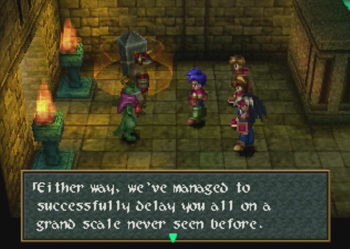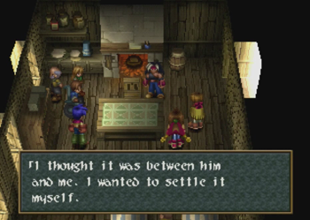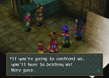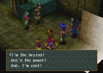 “I’m the brains! Ard’s the power! And, I’m cool! No matter how you look, we’re first rate. You Filgaia guys are second rate. You won’t get away with just a little burn.”