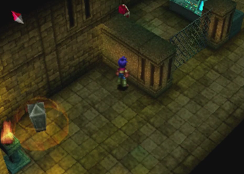 Here is our second “puzzle”. There’s a pressure plate that will reset the door switch, so you have to angle your dagger toss effectively. Grant DaNasty would be proud (but only in the Japanese version).