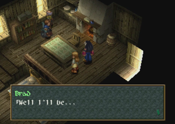 Okay, so here’s the unanswered question of Wild Arms 2: is Brad Brad? It will be distinctly noted by a NPC next update, but no photographic evidence survived that Slayheim civil war. Additionally, if you remember Brad’s introduction, Brad does not introduce himself, the pursuing soldiers just find his wallet and start calling him Brad. Billy here is out of his gourd, but he claims to be Brad. Billy is only Billy because he was found with Billy’s dog tags. Put this all together, and there are good odds that “Brad” grabbed “Billy’s” Brad-tags, and took on the identity of the Hero of Slayheim after something terrible (coming soon!) happened to Billy. Carrying on the name of a hero to inspire others and all that riot.