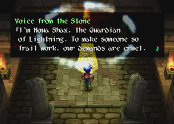 This is our first optional guardian. Well, first optional guardian that gets its own dungeon. Guardians are usually hidden in out of the way areas, like this giant cage. They’re also fond of introducing themselves before becoming inanimate rocks.