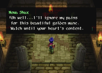 It’s hard to see in Wild Arms 2, but Noua’s other WA appearances are a little easier to decipher. He’s basically a lion with a lightning rod helmet/horn. He isn’t a buffalo. I… I always thought he was a buffalo.