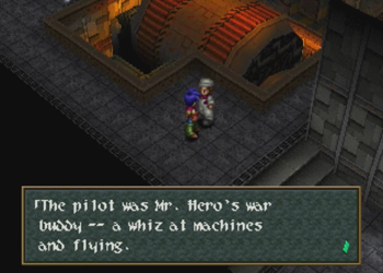 Speaking of heroes, remember how the dearly departed Brad always took the wheel with flying machines and giant computers and whatnot? Apparently there are tales of The Hero of Slayheim’s best buddy, a guy that was “a whiz at machines and flying”. While I enjoy the subtlety creeping around the edges of the main story, I kind of wish Wild Arms 2 did more to separate “Slayheim Army Brad” from “Present Brad” (or “Past Brad”, sob). I kind of want to see the (possible) Brad that was Billy’s (“Billy”) subordinate, who may have secretly been Launchpad McQuack.
