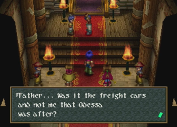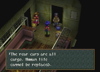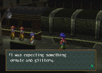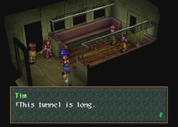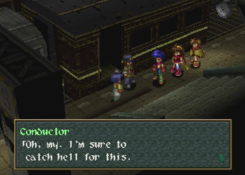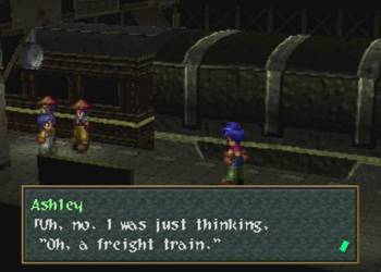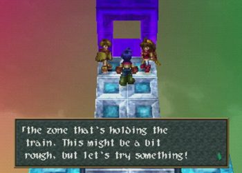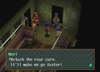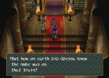 The great train robbery is an exciting and venerated trope in the Western genre. It is inevitably thrilling when a speeding train is involved, near misses happen at every turn, and some poor schlub has to duck to avoid losing his head to a tunnel. Aaaaand Wild Arms 2 comes this close to doing such a thing, but chickens out and parks its train at a glowing fantasy dungeon. Dammit. Guess we’ll all have to play Final Fantasy 15 for exhilarating train times.