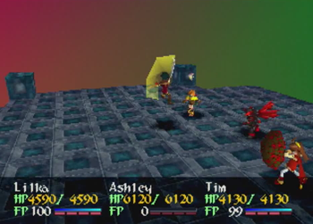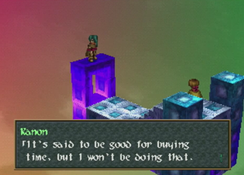 On to the fight! The last time we fought Kanon, Brad was around, and his absence is keenly felt here. Be on your guard, literally, as, in a normal, non-cheating game, Tim is likely to go down in one hit from Kanon. And, honestly, you may as well leave him dead. Attack with Ashley, heal with Lilka, and hope for the best.