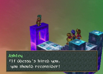 Fun fact: Caina is the only Odessa member without a last name, which may indicate she’s supposed to be an orphan, and thus a fairly perfect evil analogue to Tim. … Though I don’t think Tim has a crush on Ashley. This isn’t Nier.