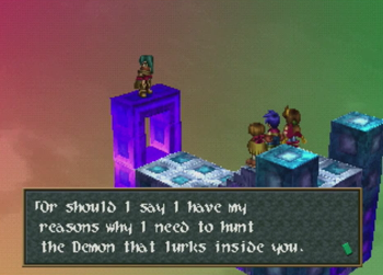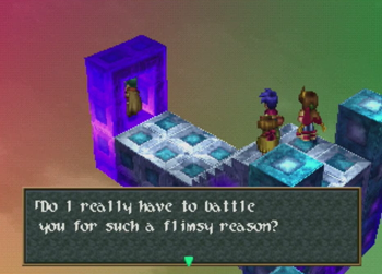 Kanon offers the ol’ “if I stop fighting for the one thing I’ve been fighting for all this time, then what I am?” excuse. Hey, blood vendettas against ancient demons are what keep JRPG worlds turning.