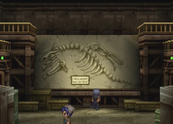 Unlike other towns, we get a neat little “town intro” upon entering. Unfortunately the town isn’t all that interesting. It’s basically a giant, indoor mall with a vaguely factory-esque aesthetic. However, they do have a cool dragon fossil.