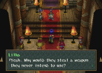 It’s the little things that make WA2. Lilka doesn’t say a word, but a quick glance in Ashley’s direction indicates her embarrassment at Ashley’s introduction abilities.